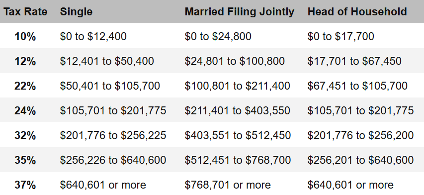 Below are the federal income tax brackets for 2026. These brackets take into account all of your ordinary income sources including: salary, bonus, GSU income, investment interest earned.